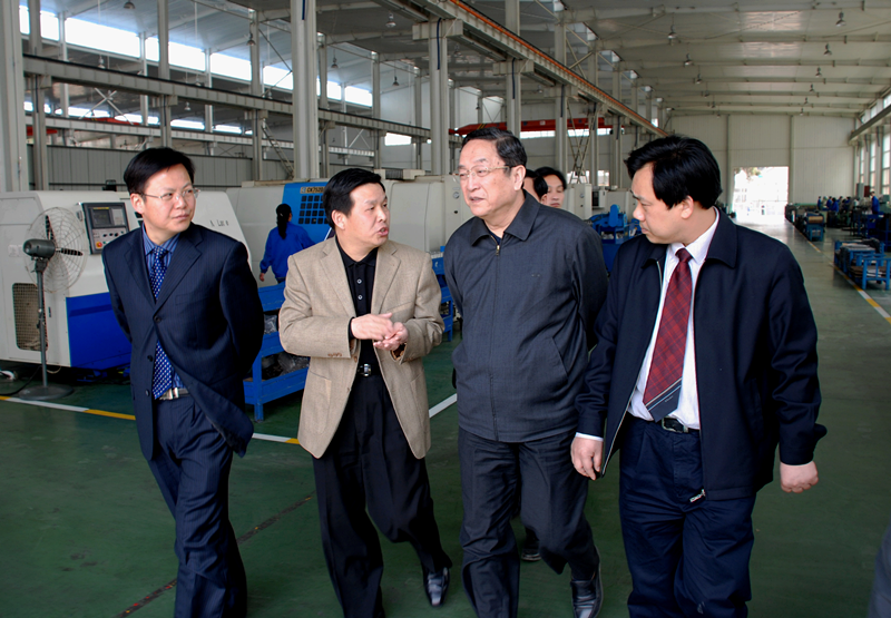 4月5日,中共中央政治局委員、湖北省委書記俞正聲,在天門市委書記別必雄,市委副書記、市長(zhǎng)張愛國(guó)和天門紡織機(jī)械有限公司總經(jīng)理沈方勇的陪同下,興致勃勃地來(lái)到天門紡織機(jī)械有限公司考察。俞正聲一面深入生產(chǎn)車間視察,一面了解公司發(fā)展情況??吹揭粭潡澑脑煲恍碌膹S房后,俞正聲滿意地說(shuō):“天門紡機(jī)每次來(lái)看都有很大的變化”。俞正聲得知公司生產(chǎn)的并條機(jī)占有國(guó)內(nèi)四成以上份額,并已和歐洲公司合作開發(fā)技術(shù)頂尖的新產(chǎn)品,高興地說(shuō):“希望你們發(fā)展得更好更快”。