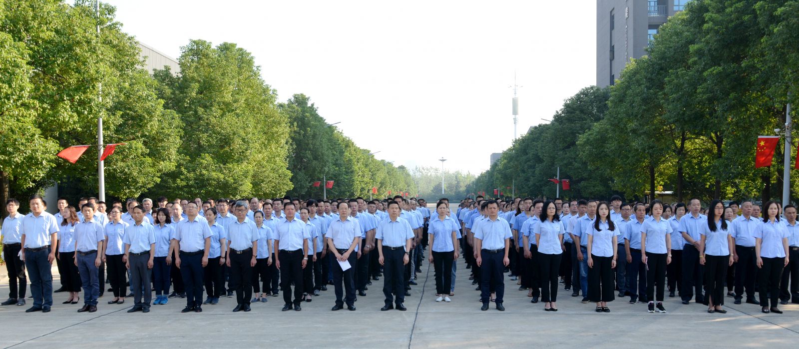 2019年9月30日早晨,一輪紅日從東方升起,給大地涂抹上一層金輝。天門紡機(jī)400多名員工在公司廣場列成方隊,為即將舉行的升國旗、唱國歌活動作準(zhǔn)備。