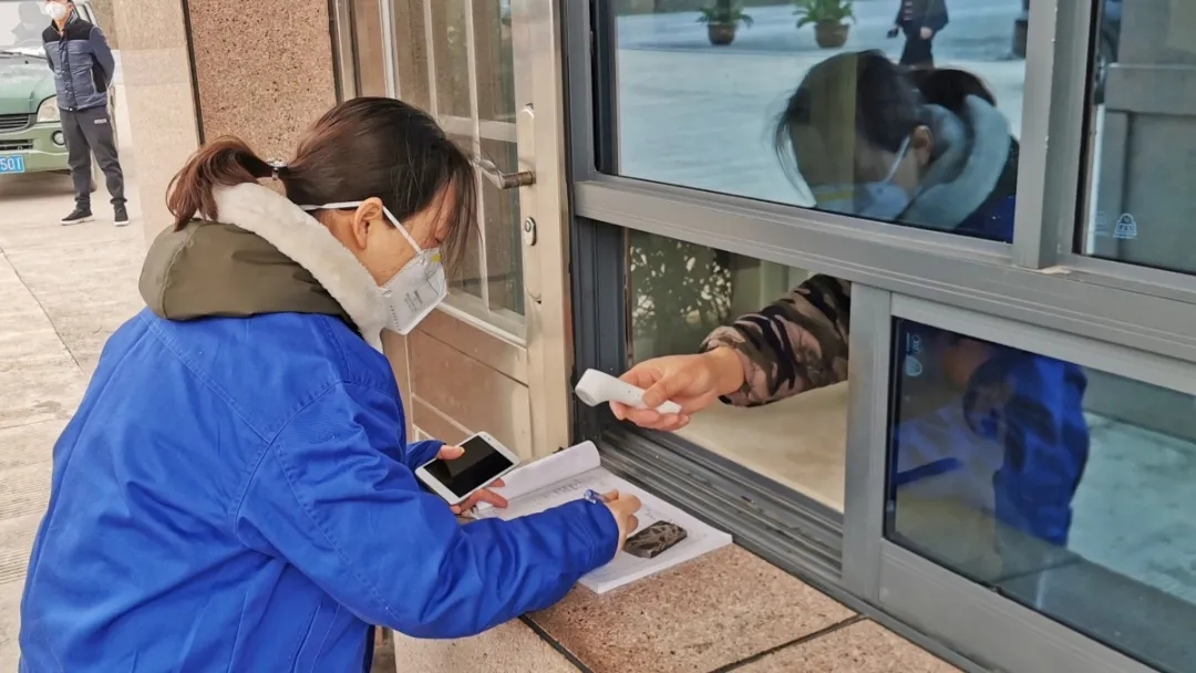 經過防控人員一系列的查看通行證、反復核對名單,測量體溫登記后,王克文終于將參加發(fā)貨的員工接到公司