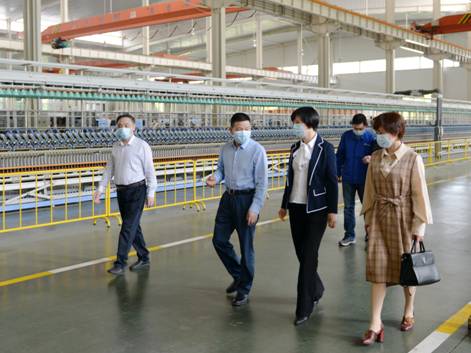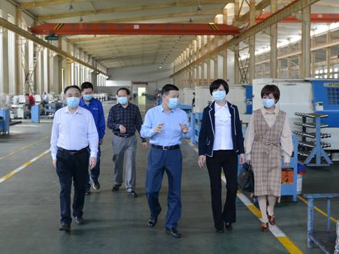 4月16日,天門市委常委、統(tǒng)戰(zhàn)部長(zhǎng)劉春霞到天門紡機(jī)調(diào)研,在公司董事長(zhǎng)沈方勇、總經(jīng)理焦倫進(jìn)、黨委書記魯?shù)挛呐阃?,進(jìn)到生產(chǎn)車間,了解掌握企業(yè)防疫和復(fù)工復(fù)產(chǎn)情況。