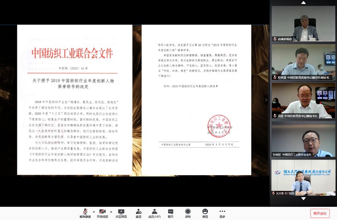 7月28日,中國紡織工業(yè)聯(lián)合會舉辦“中國紡織行業(yè)年度創(chuàng)新人物云論壇”,揭曉年度創(chuàng)新人物評選結(jié)果,沈方勇董事長在眾多參評企業(yè)家中脫穎而出,獲評“2019中國紡織行業(yè)年度創(chuàng)新人物”榮譽稱號。