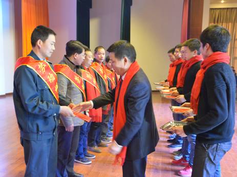 在工作中成績突出,楊吉學(xué)多次榮獲公司勞動模范和先進(jìn)工作者榮譽(yù),圖為沈方勇董事長為勞動模范楊吉學(xué)頒獎