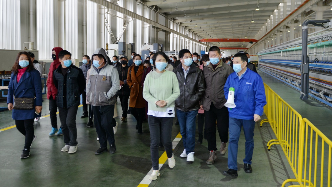 沈方勇董事長帶領(lǐng)求職人員參觀生產(chǎn)現(xiàn)場。疫情期間,天門紡機兌現(xiàn)不給黨和政府添麻煩、不給疫情防控造壓力、不給社會就業(yè)增負擔(dān)的承諾,想方設(shè)法招賢納士擴大就業(yè)。