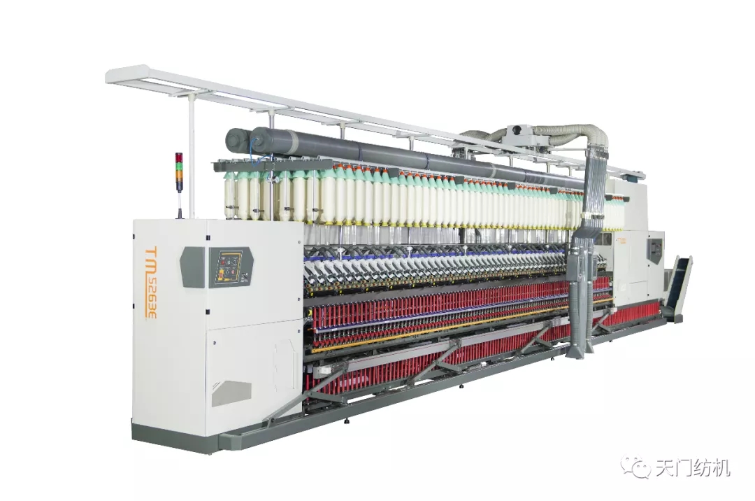TM5263E型細紗機超長錠數(shù),實紡錠速可達22000轉(zhuǎn);整體機架,新型紡紗斷面;可實現(xiàn)電子牽紳、電子升降、電子加捻、集體落紗;雙頭吸風(fēng),直聯(lián)永磁電機,使整機節(jié)能20%以上,配有單錠檢測,粗紗自停裝置;配套零尾紗錠子;可實現(xiàn)粗細絡(luò)聯(lián),機臺可聯(lián)網(wǎng)控制和物聯(lián)網(wǎng)。