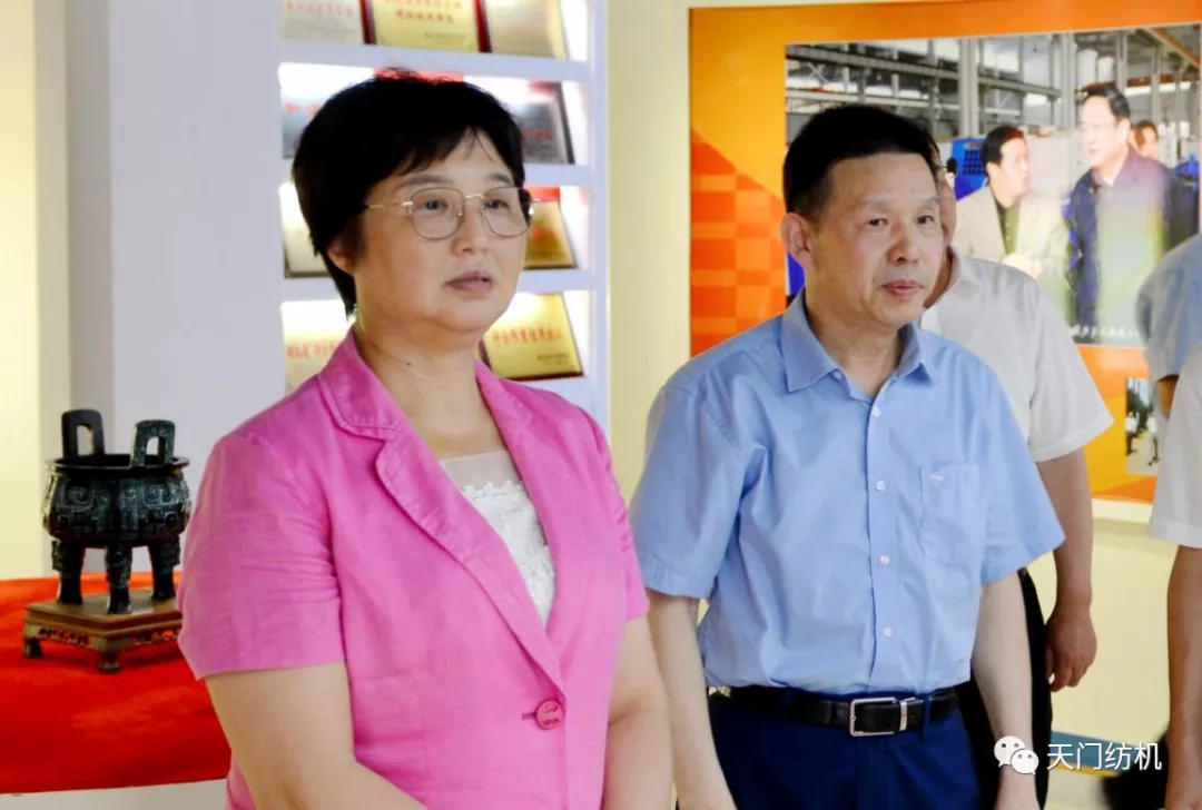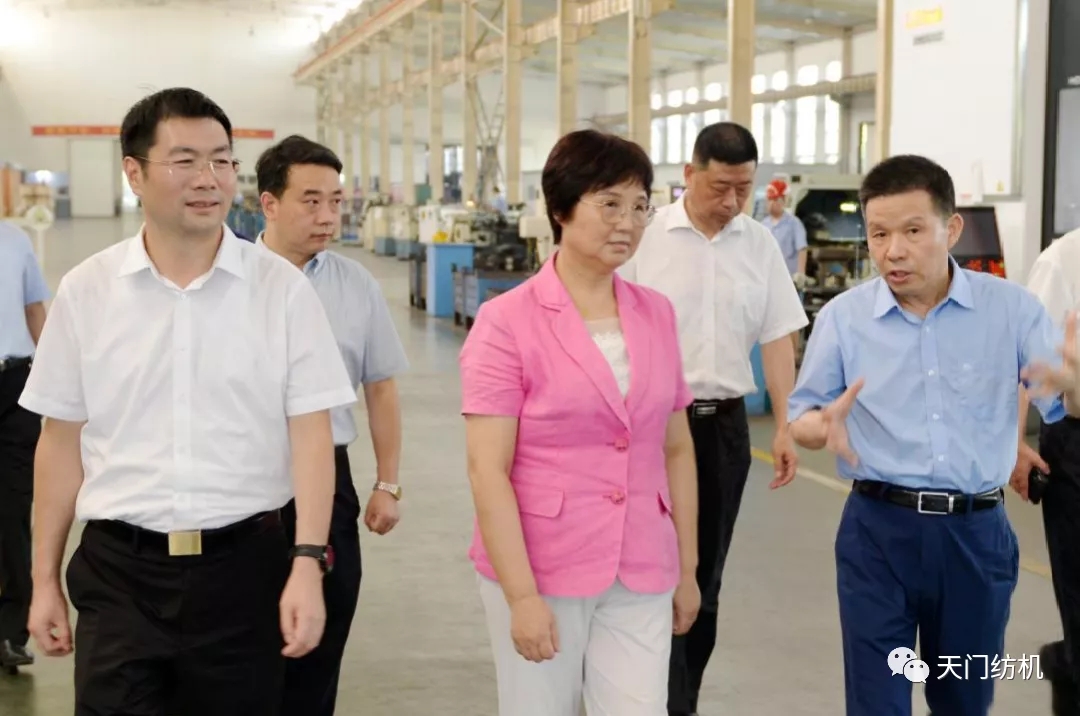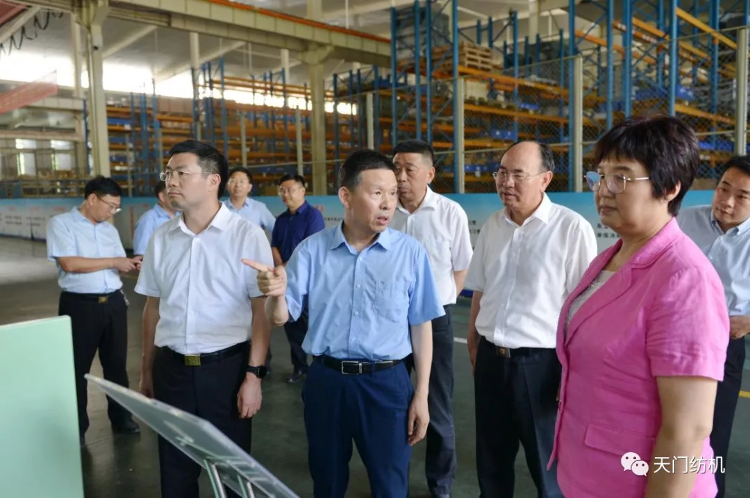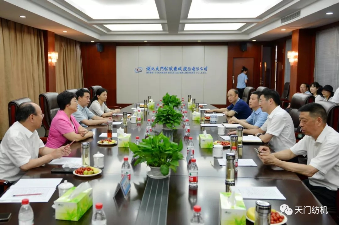 王主任一行參觀了天門紡機生產(chǎn)車間,詳細了解了紡織行業(yè)發(fā)展和公司主導產(chǎn)品研發(fā)、生產(chǎn)情況,并在公司召開了座談會。