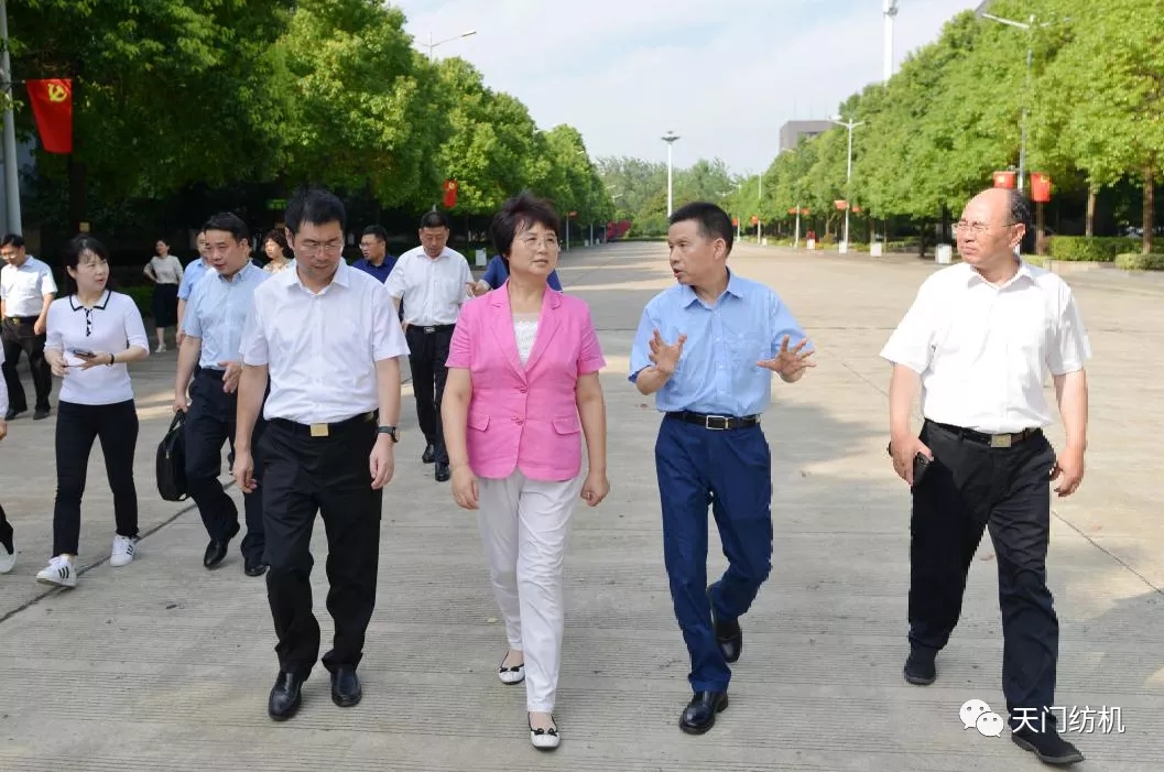 7月15日,湖北省人大常委會黨組書記、常務副主任王玲率代表工作委員會主任胡金國、研究室副主任詹金燦、辦公廳秘書處處長李春明、代工委辦公室副主任肖海麗等一行5人,在市委書記易先榮、市長楊興銘等領導的陪同下,專程調研天門紡機,并看望關心全國人大代表、公司董事長沈方勇。
