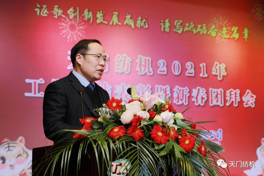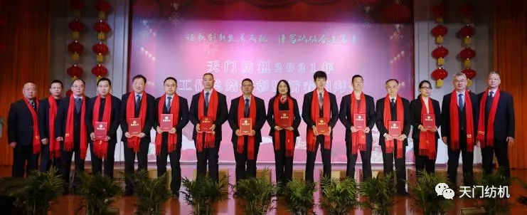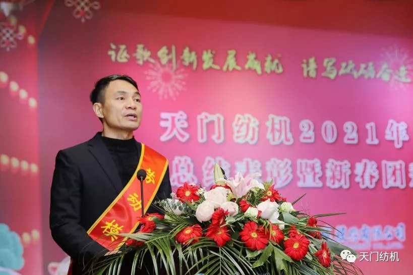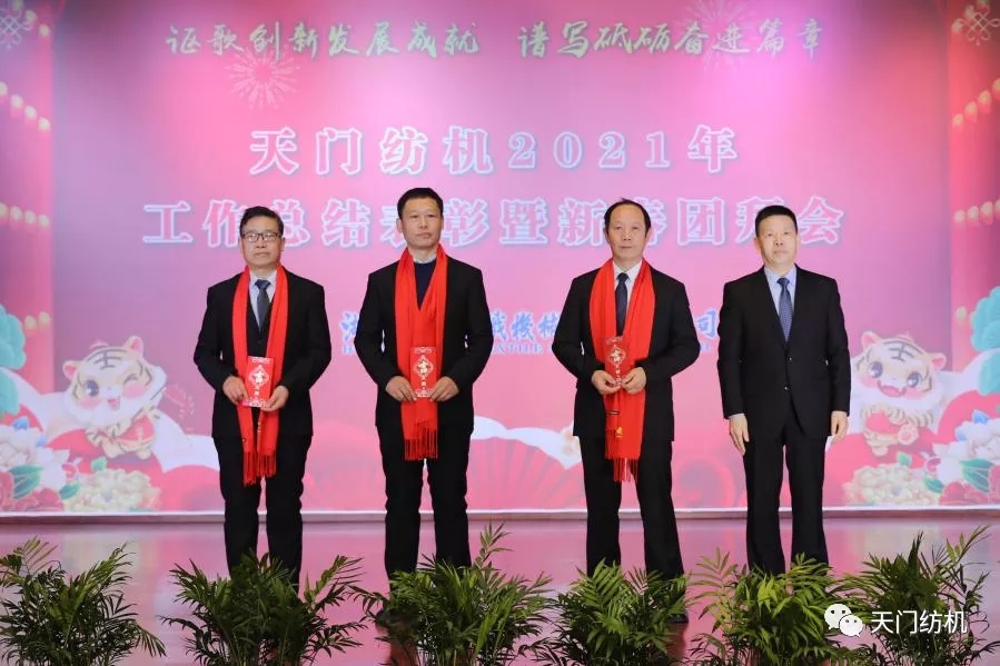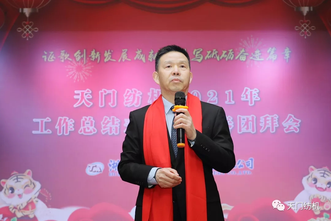 董事長沈方勇致熱情洋溢的新春賀詞,他表示,天門紡機走過了激情奮斗、碩果累累、超越自我的2021年,回首“退城進(jìn)園”、轉(zhuǎn)型陣痛、市場洗禮、疫后重生的十年,公司“專精特新”的發(fā)展之路不曾改變,研、產(chǎn)、供、銷的“六高”閉環(huán)不曾動搖,“單項冠軍產(chǎn)品”的頭銜始終沒有丟失,技術(shù)創(chuàng)新度、品牌知名度、市場占有率、產(chǎn)品附加值同步提升、屢攀新高。感恩偉大祖國,感激業(yè)界同仁的支持信賴,感謝全體員工的團結(jié)拼搏、風(fēng)雨同舟、辛勤付出!