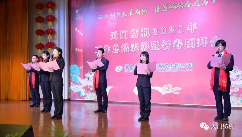 金牛奮蹄去,瑞虎踏雪來。1月29日,天門紡機的大禮堂燈光璀璨、歡聲笑語,2021年工作總結(jié)表彰暨新春團拜會隆重舉行,全司員工歡聚一堂,共賀虎年新春。