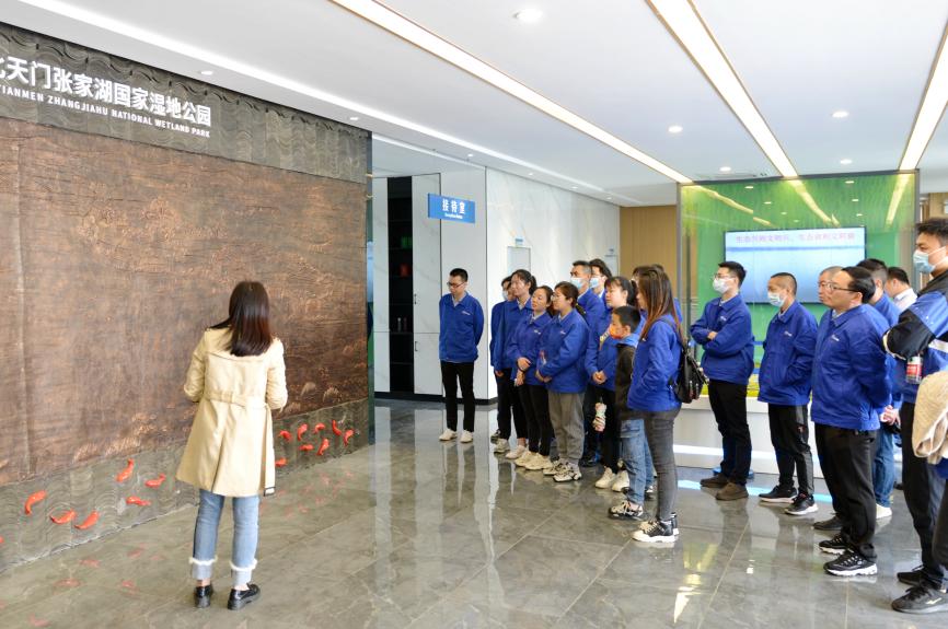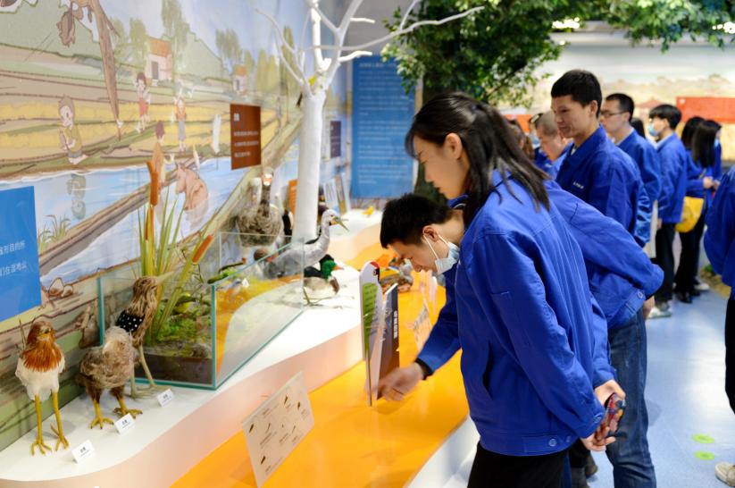 在公園管理員的導(dǎo)引下,我們拾級而上,參觀了科普館。這座科普館是以張家湖歷史、水文、生態(tài)為脈絡(luò),傾心打造的集生動(dòng)、趣味于一體的現(xiàn)代視聽平臺(tái),還原了農(nóng)耕時(shí)代人類休養(yǎng)生息的原貌和花鳥魚蟲百態(tài)。走在曲曲折折的參觀回廊上,感覺耳朵不夠使,眼睛也不夠用,太多的信息總是撲面而來。同事們都在感嘆:真是不虛此行,既休閑、愉悅了身心,又學(xué)到了知識(shí),收獲滿滿。