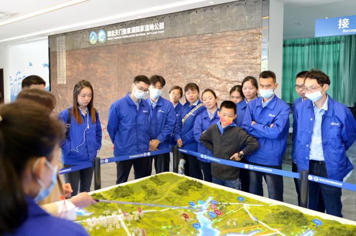 公司全體青年員工坐乘大巴車來(lái)到了張家湖國(guó)家濕地公園,它位于湖北省天門市九真鎮(zhèn),湖泊水域面積6.53平方公里,平均水深1.8米,是典型的淺水湖泊,其濕地類型屬內(nèi)陸淡水湖泊,是天門市最大的湖泊,也是湖北省保持原始生態(tài)最好的湖泊之一。到上世紀(jì)二十年代,隨著湖區(qū)淤積、湖泊萎縮,西部形成張家湖,東部形成石家湖。到達(dá)目的地后,公園的工作人員進(jìn)行了熱情地接待,大家仿佛穿越到了原生態(tài)的農(nóng)耕時(shí)代,湖泊密布,半島羅列,河湖相通,一派水鄉(xiāng)澤國(guó)、湖光田園景象。來(lái)到觀鳥臺(tái),登高望遠(yuǎn),一覽張家湖美景和各種野生鳥類。公園設(shè)有科普館,里面陳列了濕地的人文風(fēng)貌及天門的特色文化,還有各種攝影大片。