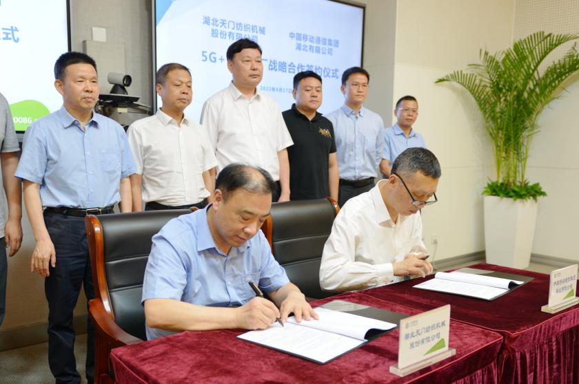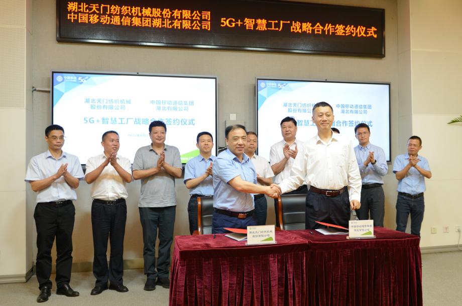 熱烈的掌聲中,天門(mén)紡機(jī)總經(jīng)理焦倫進(jìn)與湖北移動(dòng)副總經(jīng)理劉焱宇在“5G+智慧工廠”戰(zhàn)略合作框架協(xié)議書(shū)上簽字,為一個(gè)宏偉工程、一份殷切期望寫(xiě)下開(kāi)啟日期。