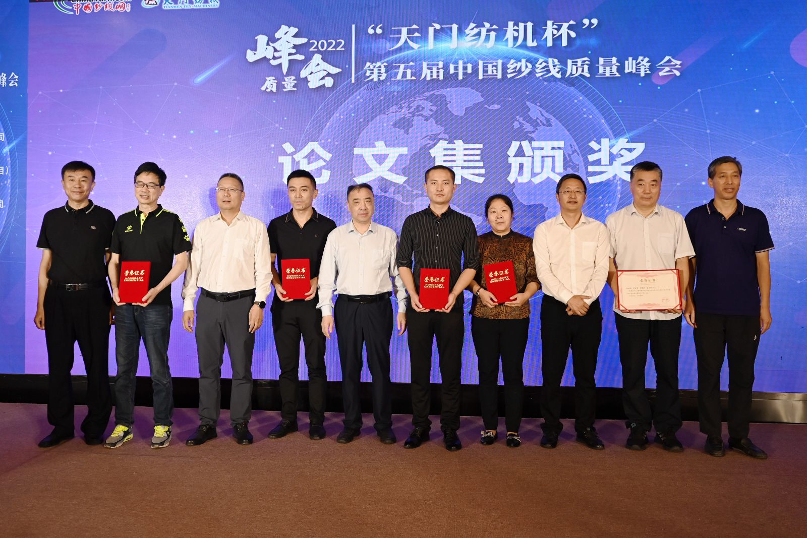 隨后,大會(huì)隆重舉行了“天門紡機(jī)杯”第五屆中國(guó)紗線質(zhì)量峰會(huì)論文頒獎(jiǎng)活動(dòng)和“烏斯特-錦峰杯”《總師俱樂部》十周年征文頒獎(jiǎng)活動(dòng)。