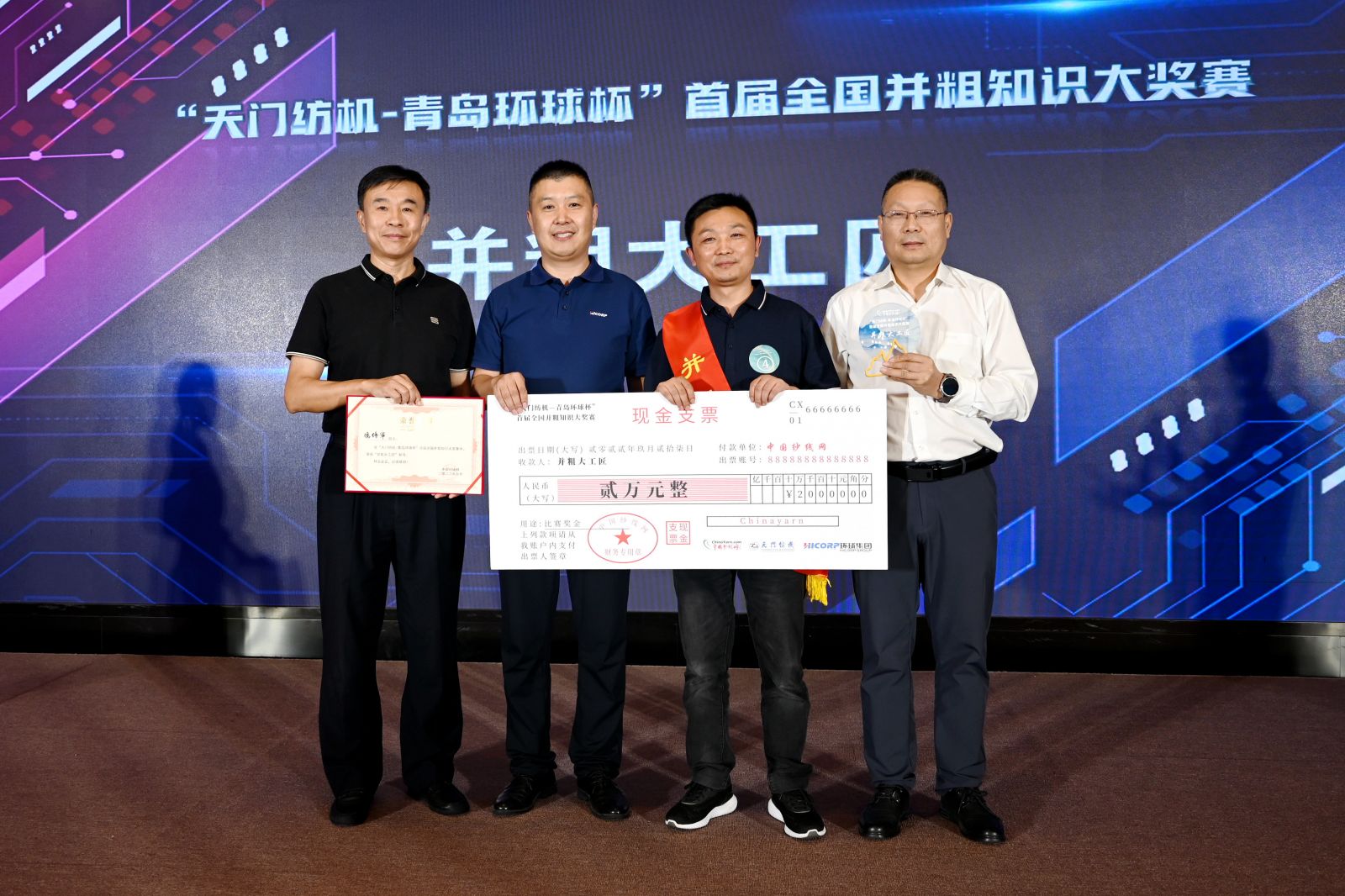 27日下午,大會(huì)隆重舉行了“天門紡機(jī)-青島環(huán)球杯”首屆全國(guó)并粗知識(shí)大獎(jiǎng)賽現(xiàn)場(chǎng)爭(zhēng)霸賽及頒獎(jiǎng)活動(dòng)。