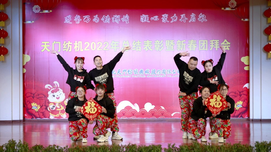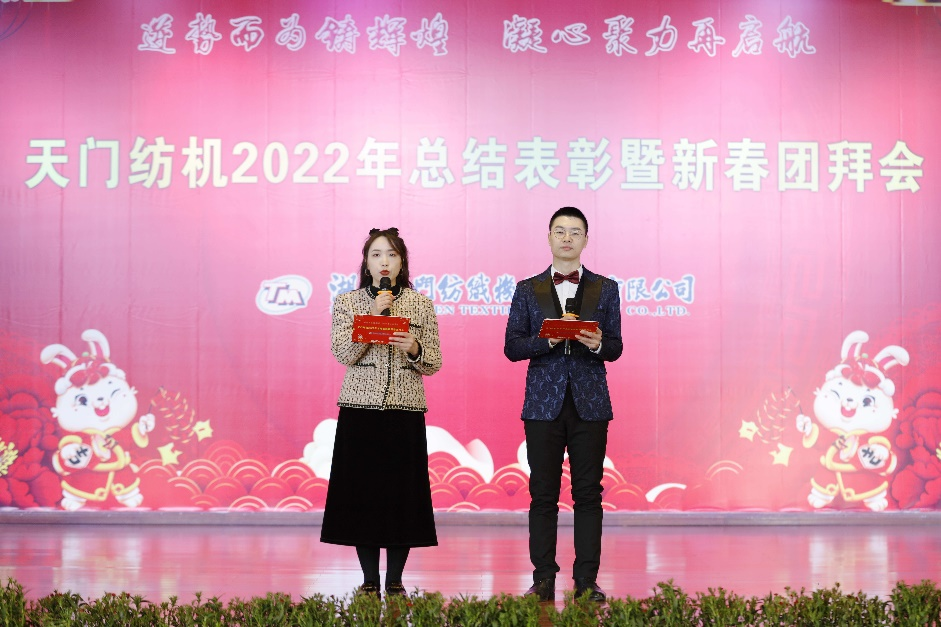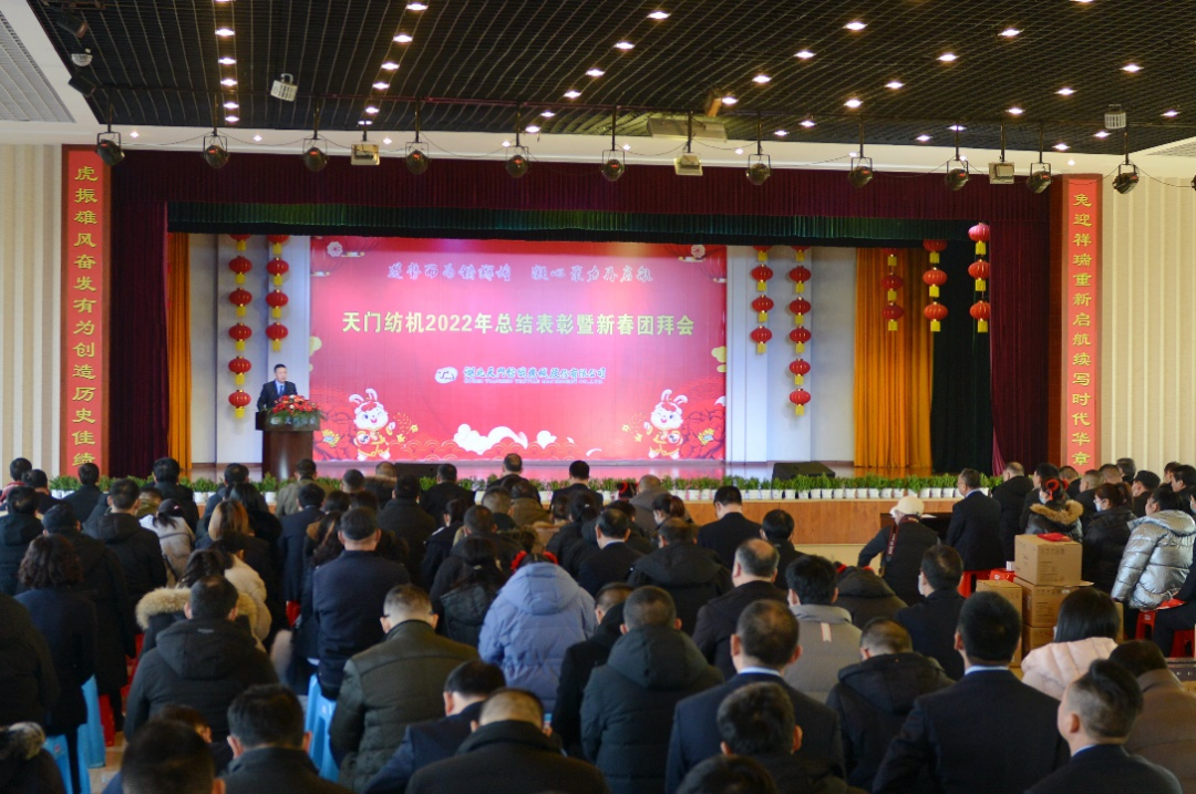 2023年1月18日下午,天門紡機(jī)艷陽高照、喜氣盈門,2022年工作總結(jié)表彰暨新春團(tuán)拜會在綜合樓多功能廳隆重舉行。