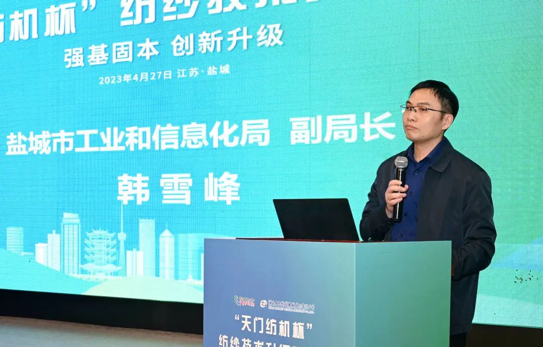 2023年4月27日,“天門紡機(jī)杯”紡紗技術(shù)升級研討會在江蘇鹽城瀛洲開元大酒店舉行。