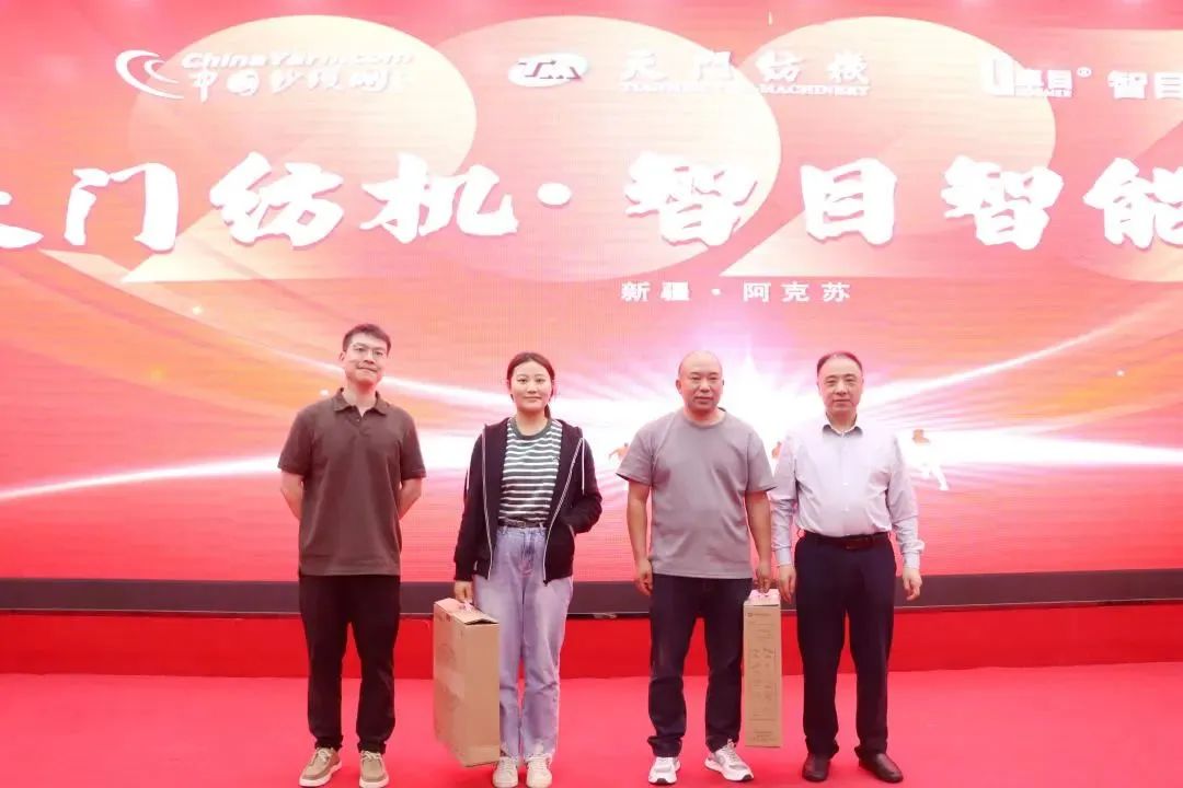 天門紡機(jī)新疆辦事處主任趙凱抽取一等獎(jiǎng)并頒獎(jiǎng)合影