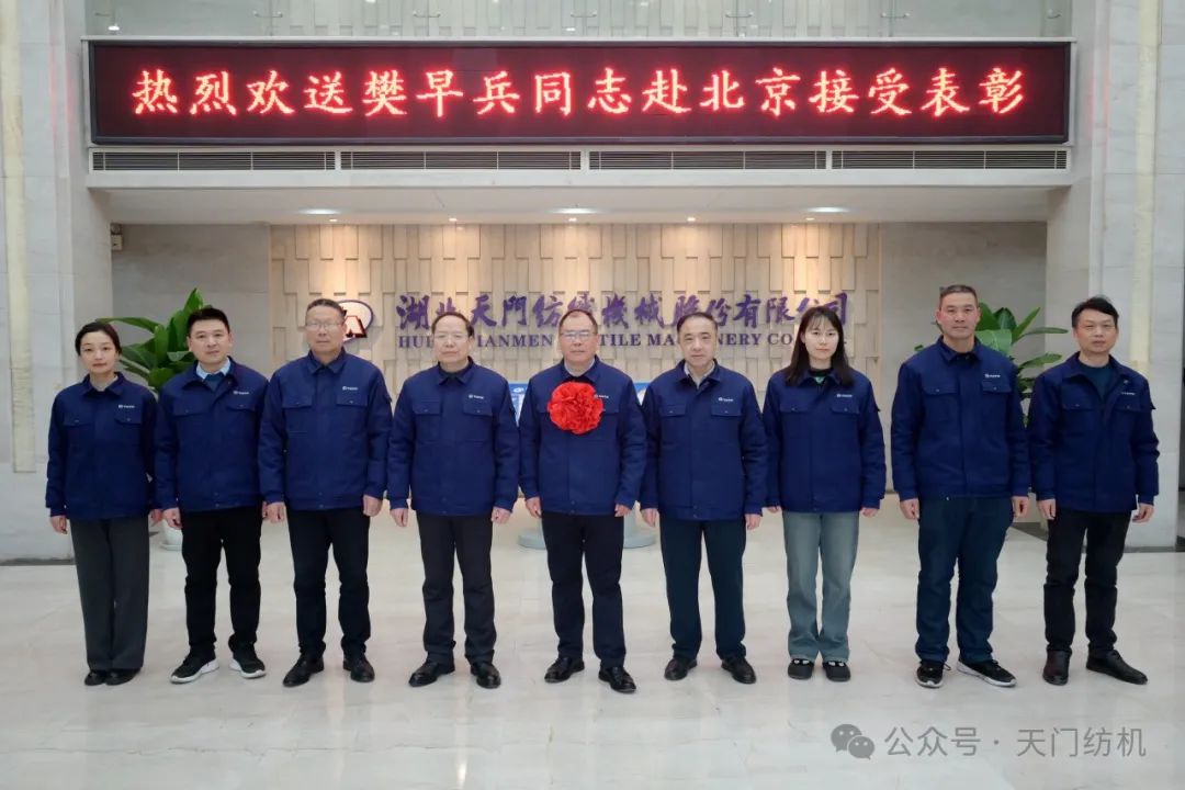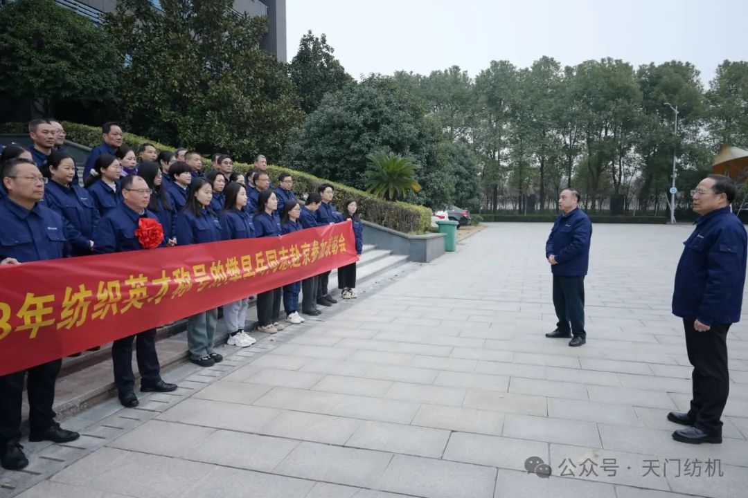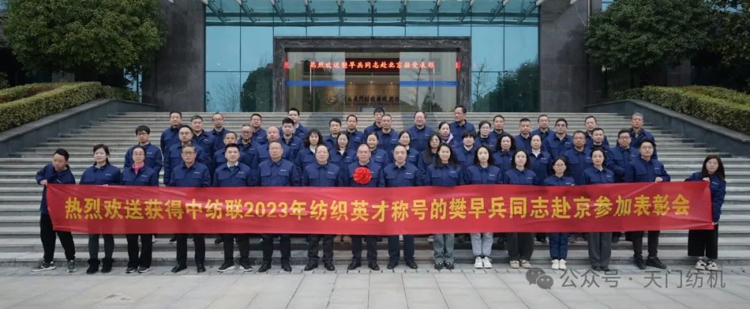 2024年1月15日上午,天門紡機(jī)部室員工齊聚科技樓大廳,歡送公司品控總監(jiān)、高級檢驗師樊早兵同志赴京參加“2023年中國紡織人才大會”。公司總經(jīng)理焦倫進(jìn)在歡送活動中即席講話,他說,樊早兵同志被授予“2023年度新時代紡織英才”,是中紡聯(lián)對他取得的顯著成績及奉獻(xiàn)精神的充分肯定,實至名歸。他得到如此殊榮是天門紡機(jī)的驕傲,全體員工要以他為榜樣,努力工作,奮發(fā)有為,為公司高質(zhì)量發(fā)展貢獻(xiàn)應(yīng)有的力量。送行的員工敲鑼打鼓,載歌載舞,把現(xiàn)場氣氛推向高潮。