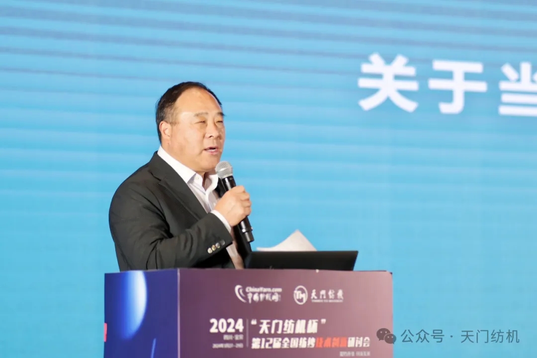 公司焦倫進總經(jīng)理介紹了天門紡機產(chǎn)品開發(fā)情況,剖析了行業(yè)形勢和企業(yè)面臨的機遇與挑戰(zhàn)。他說,天門紡機作為并條機的專業(yè)生產(chǎn)廠家,不斷加大研發(fā)投入,專注于技術(shù)創(chuàng)新和產(chǎn)品研發(fā),不斷探索新技術(shù),成功研發(fā)并推向市場的TM11、TM13、TM15、TM17系列并條機已成為行業(yè)主力產(chǎn)品。公司倡導“并條工序全自調(diào)勻整”的理念后,推出了TM19大圈裝高速自調(diào)勻整并條機,并已在多家國內(nèi)知名紡織企業(yè)推廣應(yīng)用,效果十分明顯。在2023年11月舉行的上海國際紡機展覽會上,公司推出的TM25、TM27、TM29、TM35等四款并條機,因擁有智能在線檢測、一控多軸多臺、數(shù)據(jù)管理云平臺等技術(shù),引起了業(yè)界廣泛關(guān)注,得到了高度評價;他強調(diào),2024年,紡織行業(yè)仍將處于產(chǎn)業(yè)恢復期,市場逐漸回暖。同時,紡織行業(yè)正處在朝高端化、智能化、綠色化發(fā)展的轉(zhuǎn)型升級關(guān)鍵期,市場潛力大,積極向好的發(fā)展趨勢逐步顯現(xiàn)。因此,2024年將是機遇與挑戰(zhàn)并存、困難與希望同在的一年。只要我們保持定力,加強交流合作,群策群力,不斷推進數(shù)字化轉(zhuǎn)型和智能化改造,加快發(fā)展新質(zhì)生產(chǎn)力,就一定能開創(chuàng)更加美好的未來。