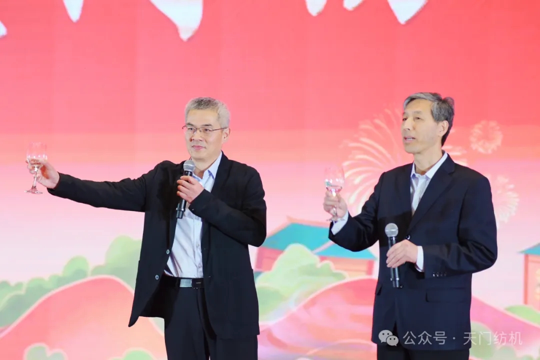 在28日的“天門紡機之夜”招待晚宴,天門紡機市場總監(jiān)周志宏、中國紗線網(wǎng)副主編孫其海分別致祝酒辭。酒香四溢之中,精彩的節(jié)目表演及抽獎活動把晚宴氣氛推向高潮。