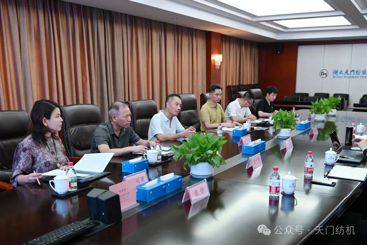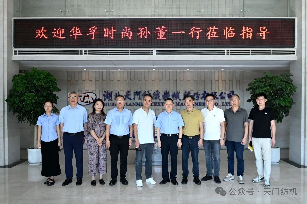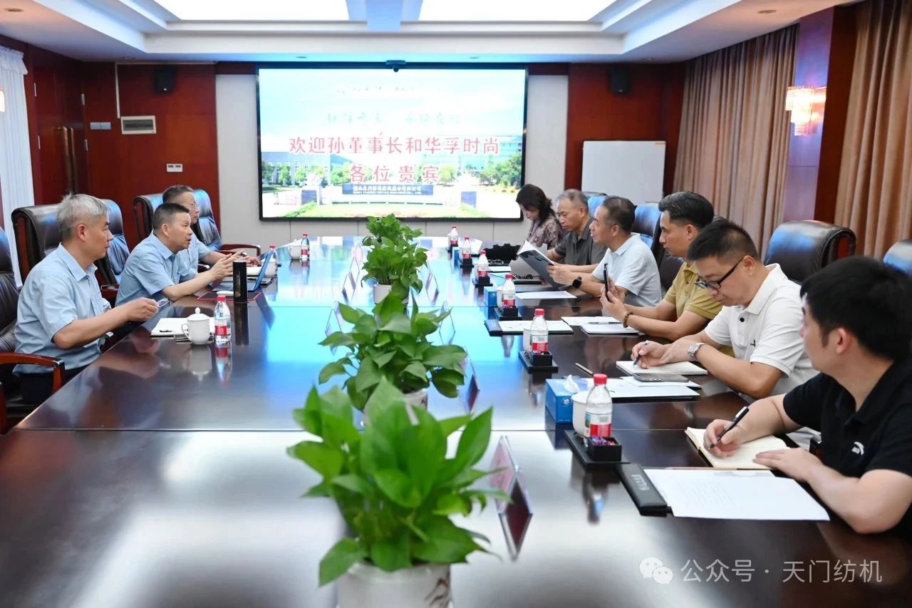 2025年8月26日,華孚時(shí)尚股份有限公司董事長孫偉挺一行6人專程到訪天門紡機(jī)進(jìn)行考察交流。公司董事長沈方勇等領(lǐng)導(dǎo)熱情接待到訪客人,雙方圍繞行業(yè)形勢及協(xié)同發(fā)展等議題進(jìn)行了深入交流,并就淮北及越南等新建項(xiàng)目的再次合作達(dá)成意向。