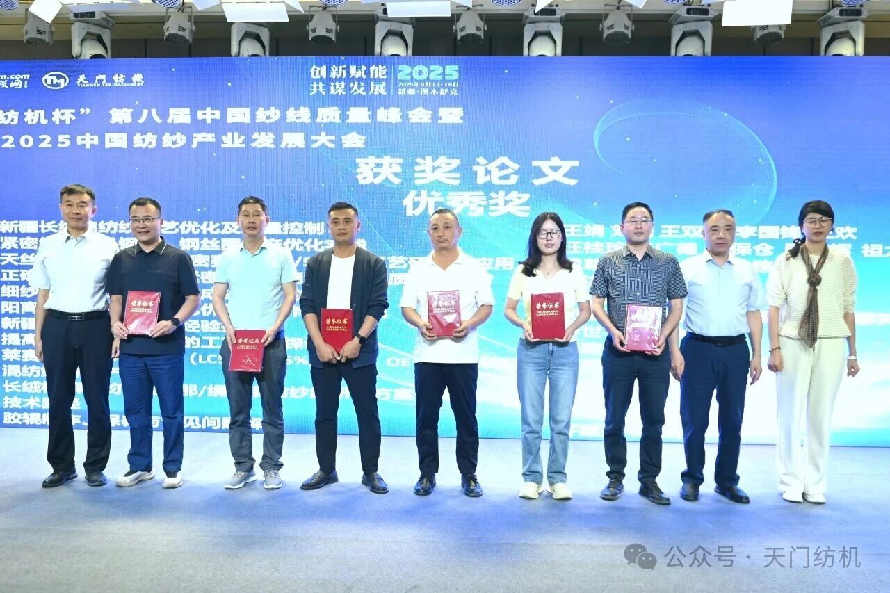 開幕式上,隆重舉行了“天門紡機杯”第八屆中國紗線質(zhì)量峰會獲獎論文頒獎活動,新疆維吾爾自治區(qū)紡織工程學會理事長、新疆大學紡織與服裝學院院長夏鑫,天門紡機總經(jīng)理焦倫進,中國紗線網(wǎng)總裁鞠彥軍為獲獎作者頒發(fā)了證書和獎金。
