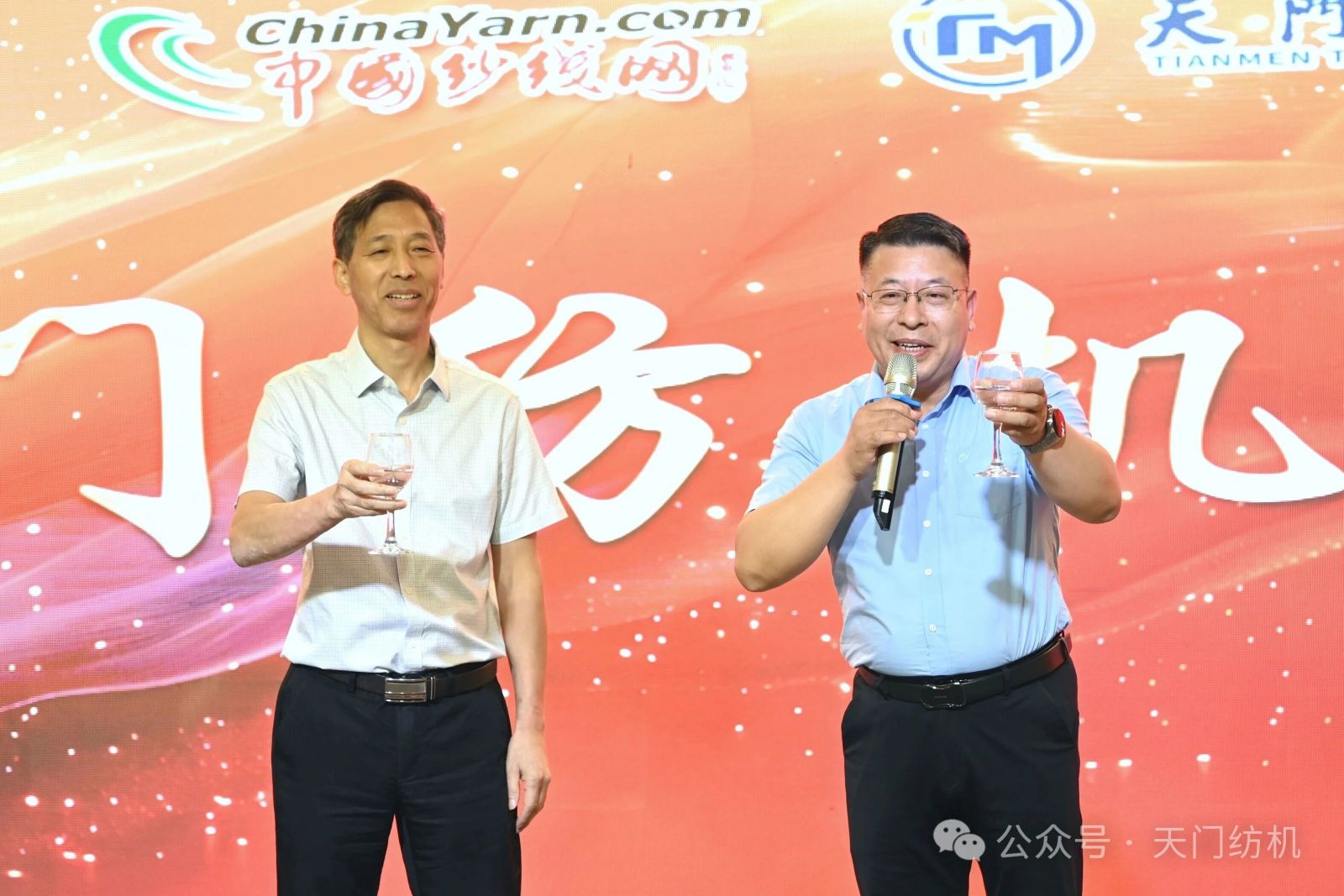 中國紗線網(wǎng)常務副總裁孫其海(左)、天門紡機市場總監(jiān)王繼文(右)為晚宴致辭
